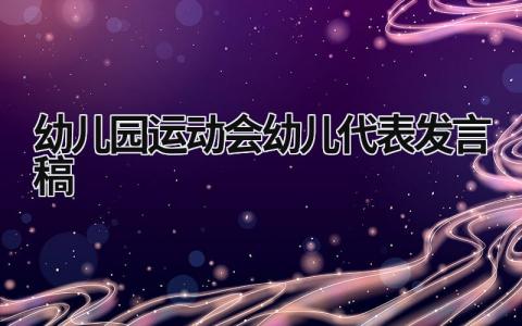 幼儿园运动会幼儿代表发言稿,指的是在幼儿园运动会中,由幼儿代表发表演讲的稿件。这个稿件通常是在运动会开幕式或其他重要场合由幼儿代表发表,以表达对运动会的祝福、期待以及对运动精神的理解和倡导。以下是有关于幼儿园运动会幼儿代表发言稿的有关内容,欢迎大家阅读!